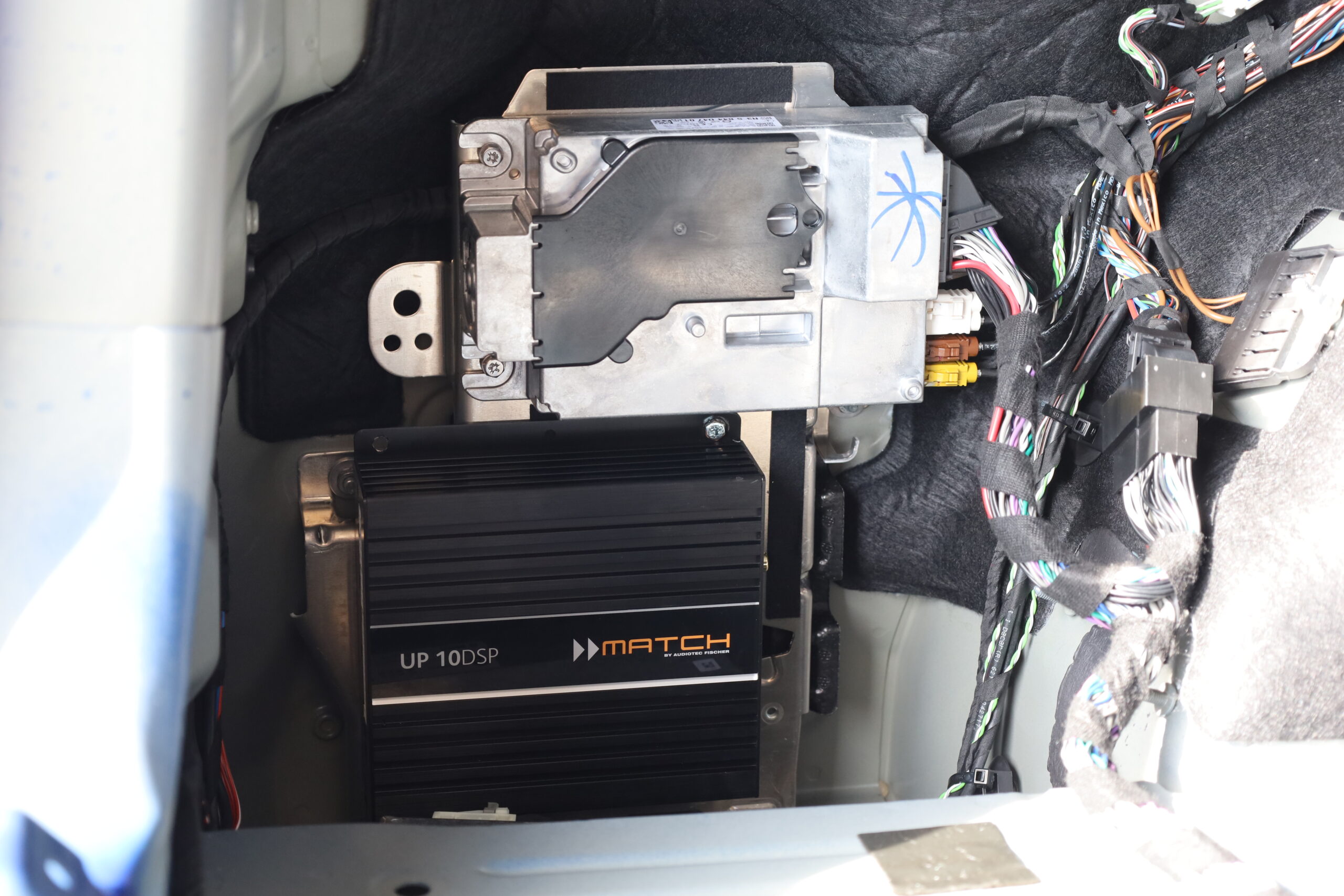 Bei diesem BMW M240i wurde die komplette Audioanlage auf ein neues Level gebracht. Herzstück des Systems ist ein MATCH UP 10DSP – 10-Kanal Verstärker mit integriertem DSP, der eine präzise und individuelle Klangabstimmung auf das Fahrzeug ermöglicht.