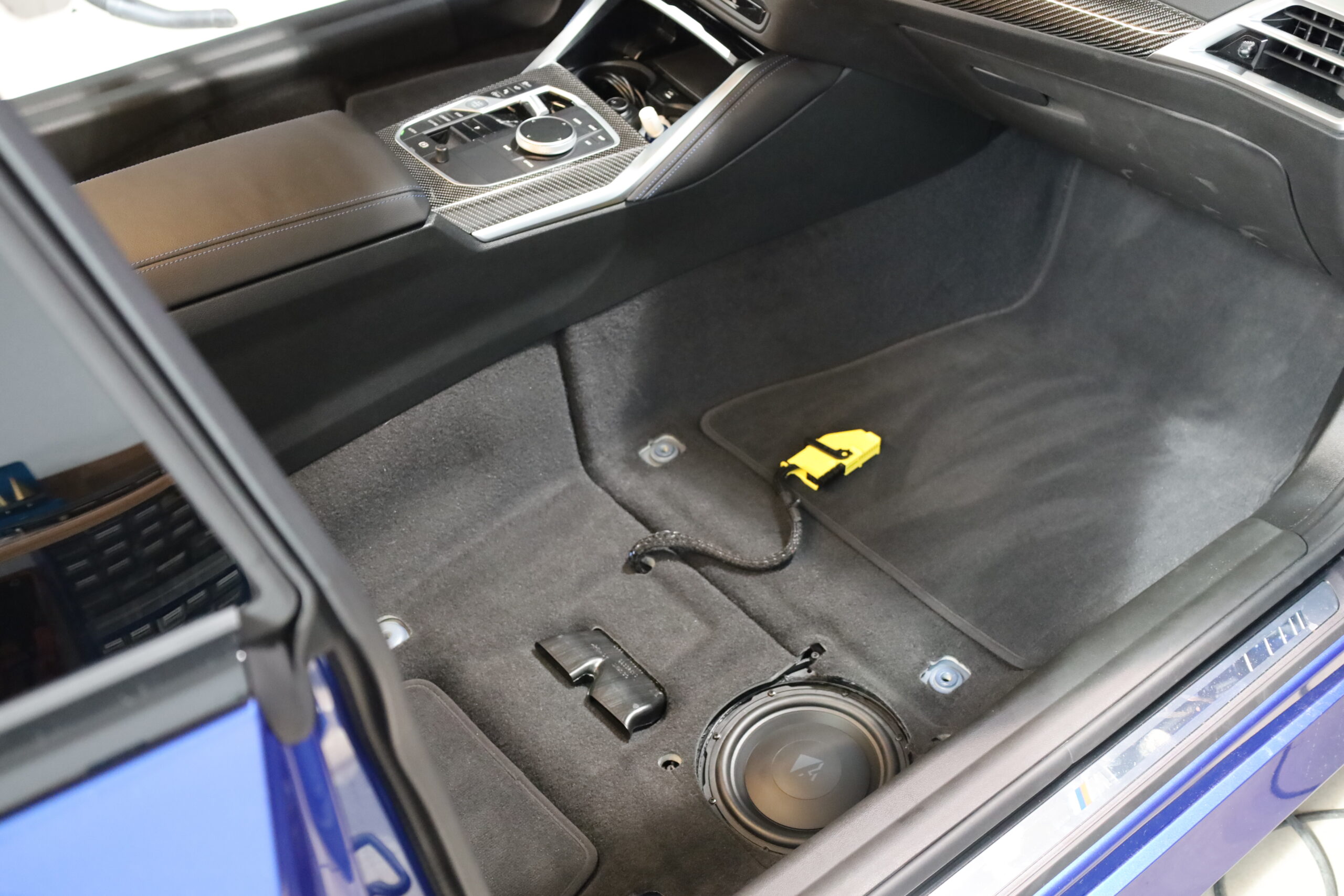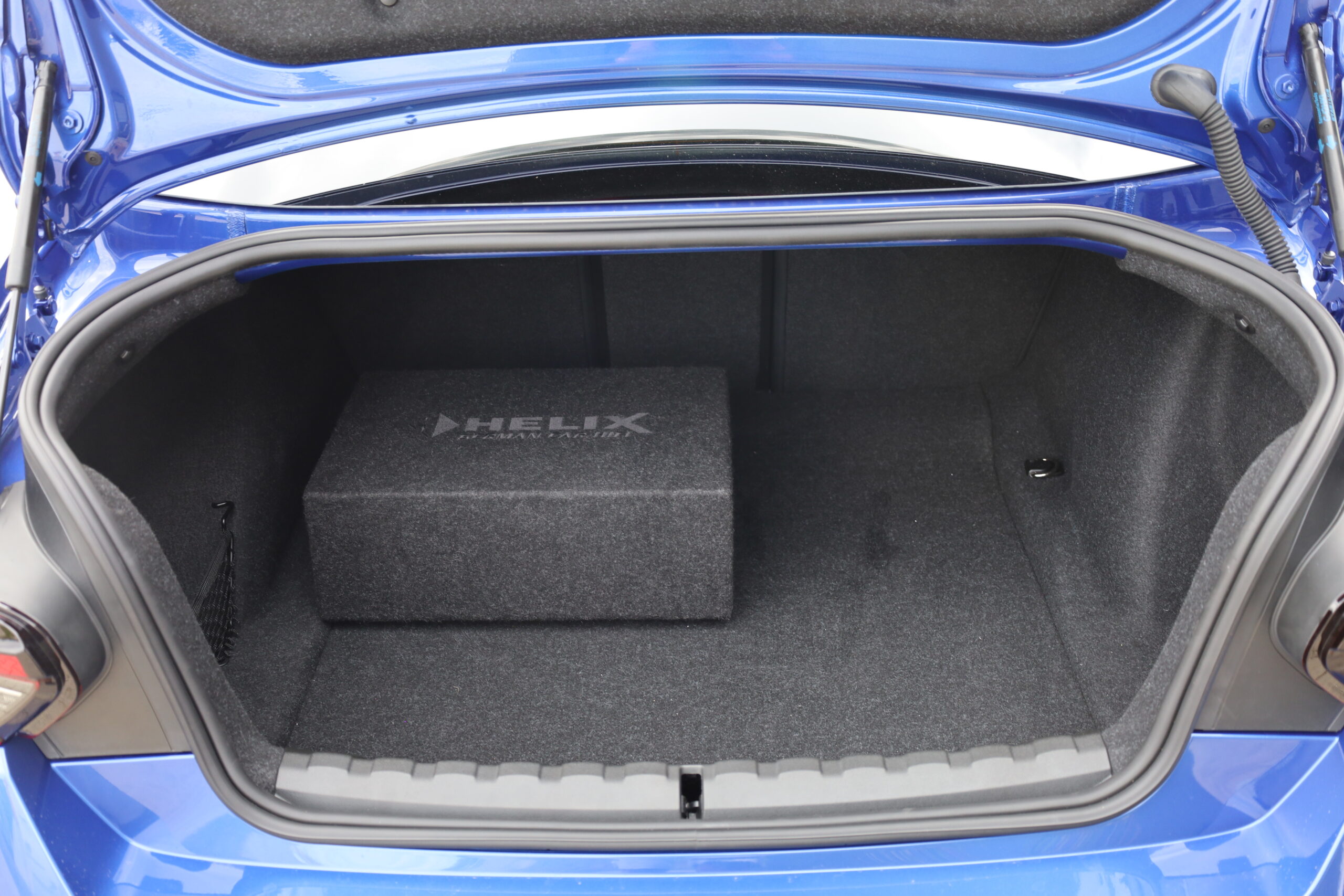 Für noch mehr Tiefe wurde im Kofferraum ein HELIX IK E10.1 Subwoofer in einem individuellen Gehäuse integriert. Über einen universellen Drehregler kann der Kunde den Basspegel oder andere DSP-Funktionen komfortabel steuern.