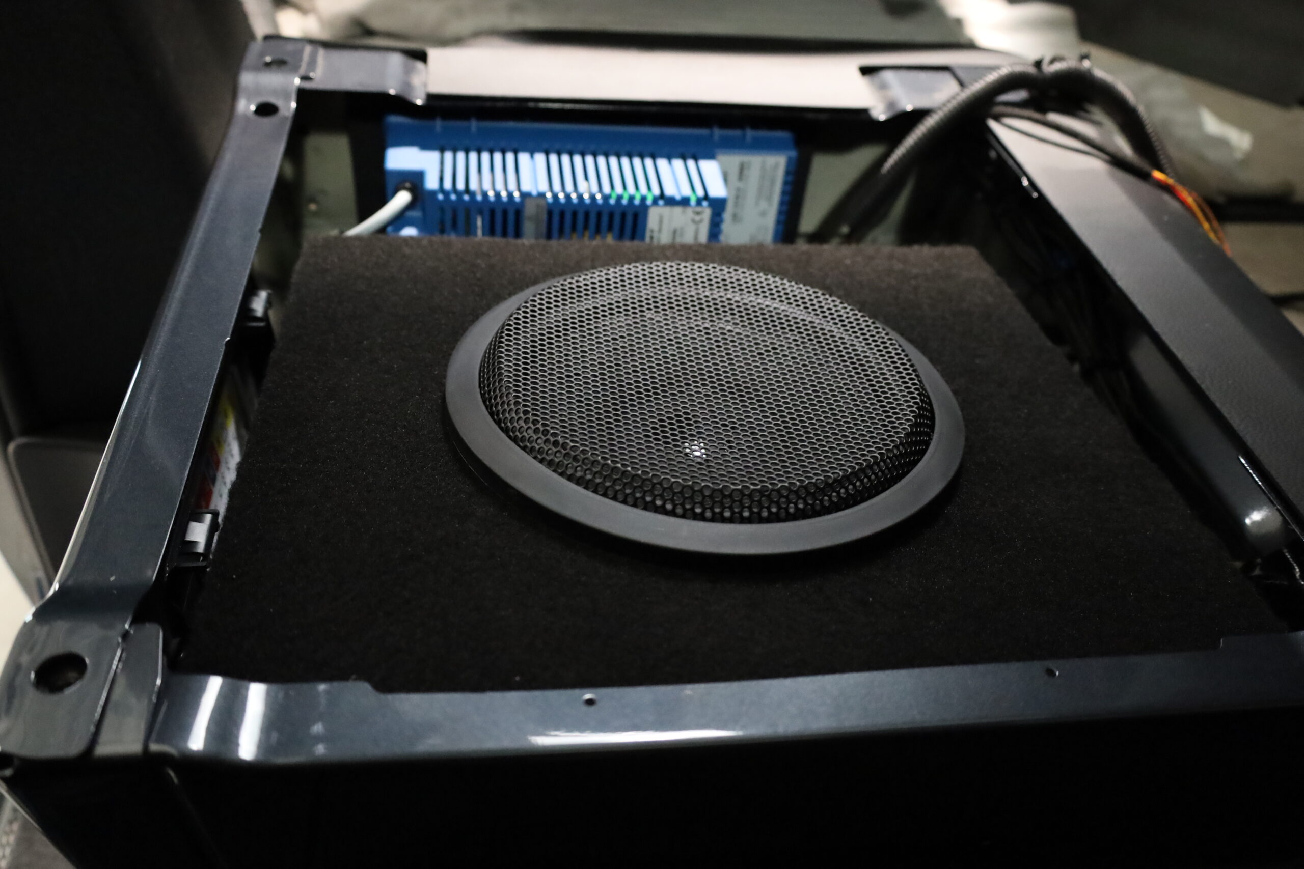 Auf dem Armaturenbrett wurde ein hochwertiges Frontsystem installiert – inklusive Hochtönern – um eine präzise und lebendige Klangbühne im Innenraum zu erzeugen.
