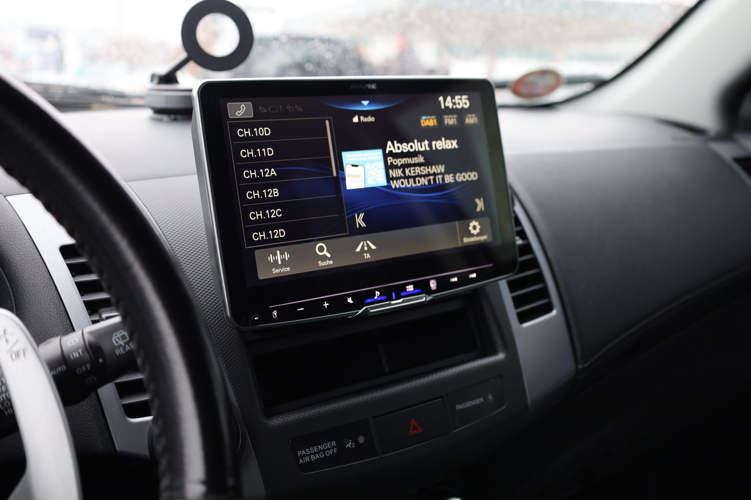 In diesem Mitsubishi Outlander wurde das serienmäßige Infotainmentsystem durch ein modernes Alpine iLX-F950D Navigationssystem ersetzt.